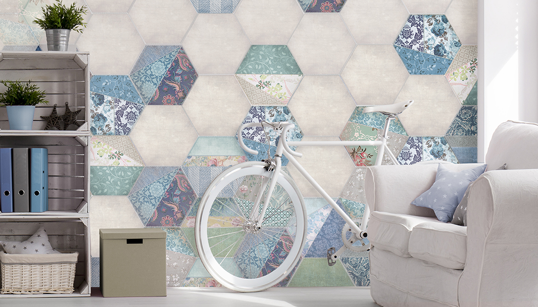 • Cerámica esmaltada decorada hexagonal