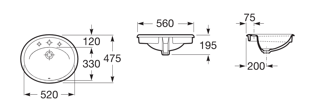 Lavatorio de porcelana de encimera, 3 orificios
