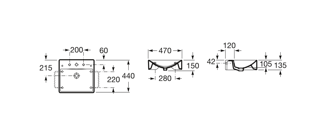 • Orificios para Grifería: 1 Insinuado, 1 orificio practicado, 1 Insinuado