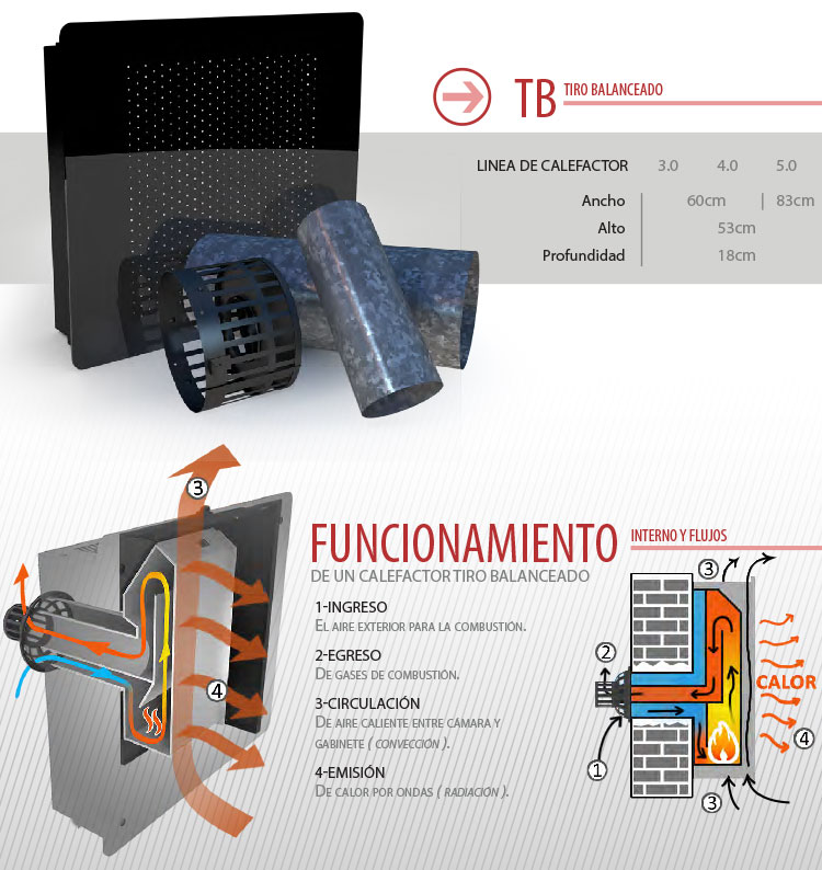 El aire que circula porc debajo de la estufa se calienta en contacto con la cámara y es expulsado a temperatura porc la parte superior de la estufa