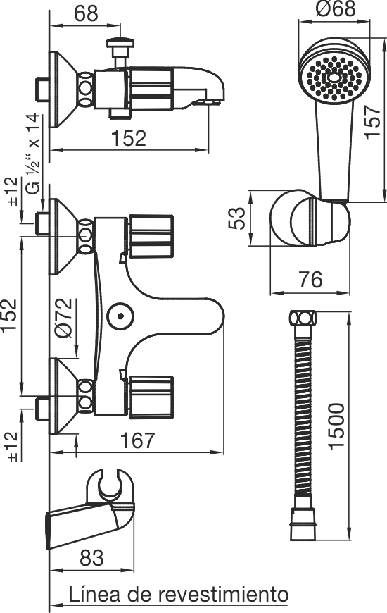 Juego para bañera y ducha, exterior pared, con ducha manual incluída.