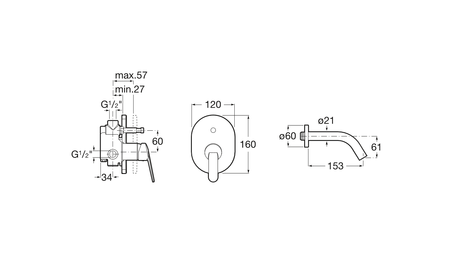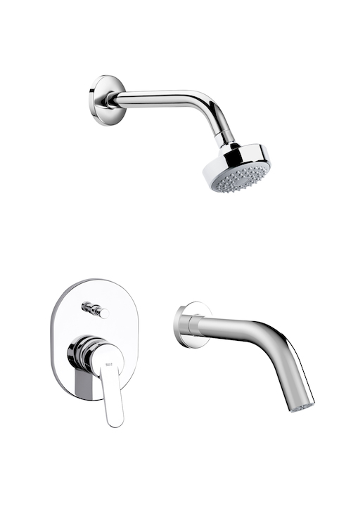 Kit empotrable para baño-ducha, con brazo de ducha 215 mm, rociador Ø80 mm y caño de bañera
