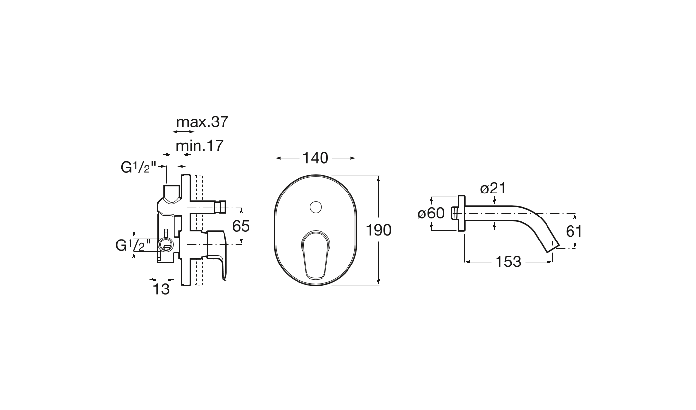 Kit empotrable para baño-ducha, con brazo de ducha 215 mm, rociador Ø80 mm y caño de bañera