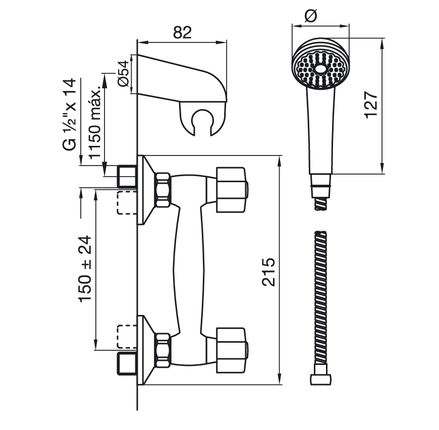 Juego para ducha, exterior pared, con ducha manual incluída.