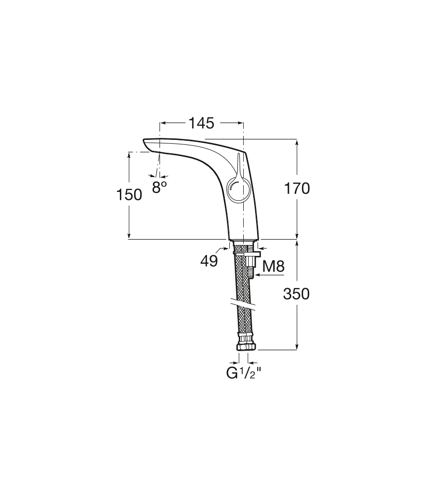 Mezclador monomando para Lavatorio con cuerpo liso y desagüe click-clack, Cold Start