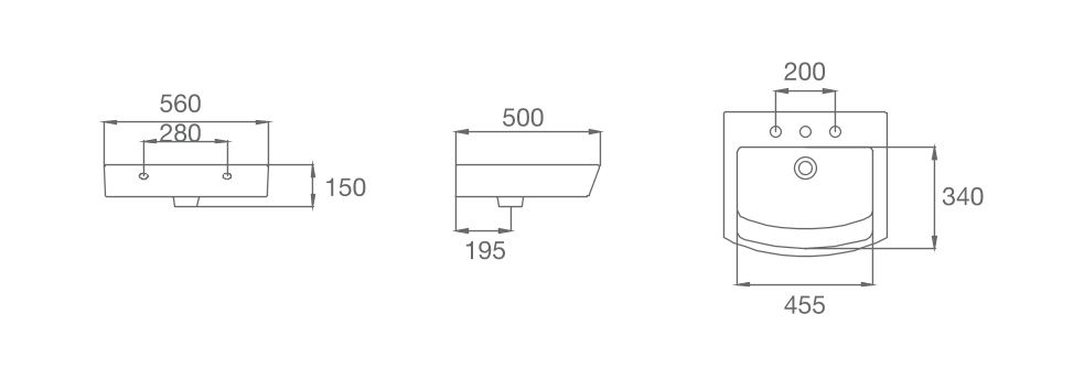 Lavatorio de porcelana suspendido o de sobre encimera con fijaciones, 1 orificio