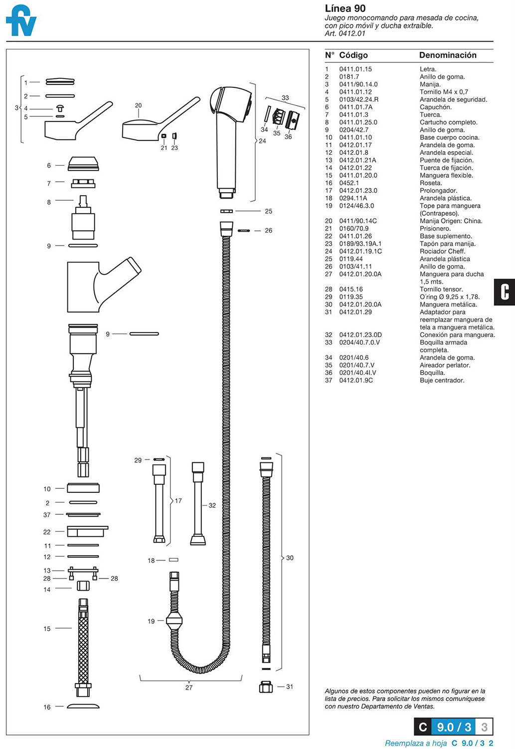 Juego monocomando para mesada de cocina, con rociador manual extraíble
