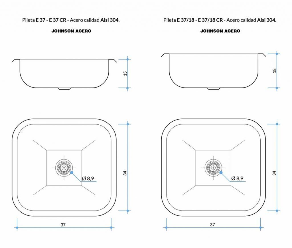 Pileta Johnson E 37/18 (37x34x18) C/Sop
