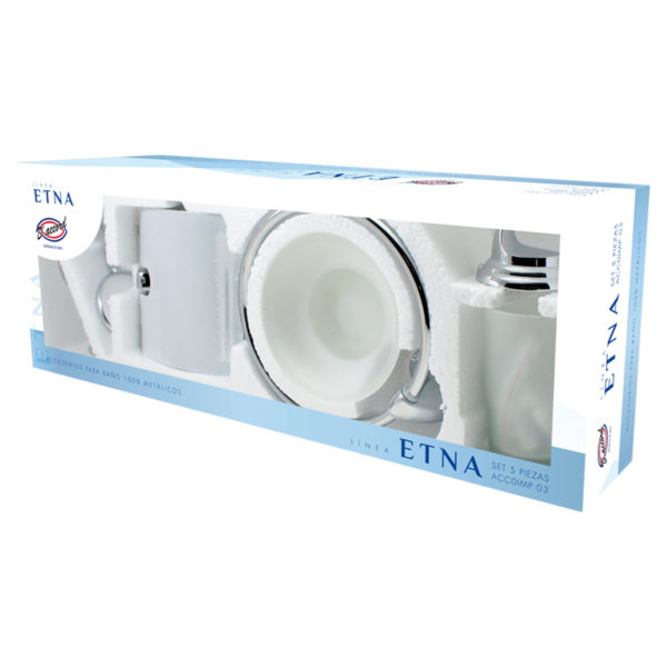 Set x5 Piezas Etna (Percha, Aro toallero, P/rollo, Jabonera, Vaso cepillo)