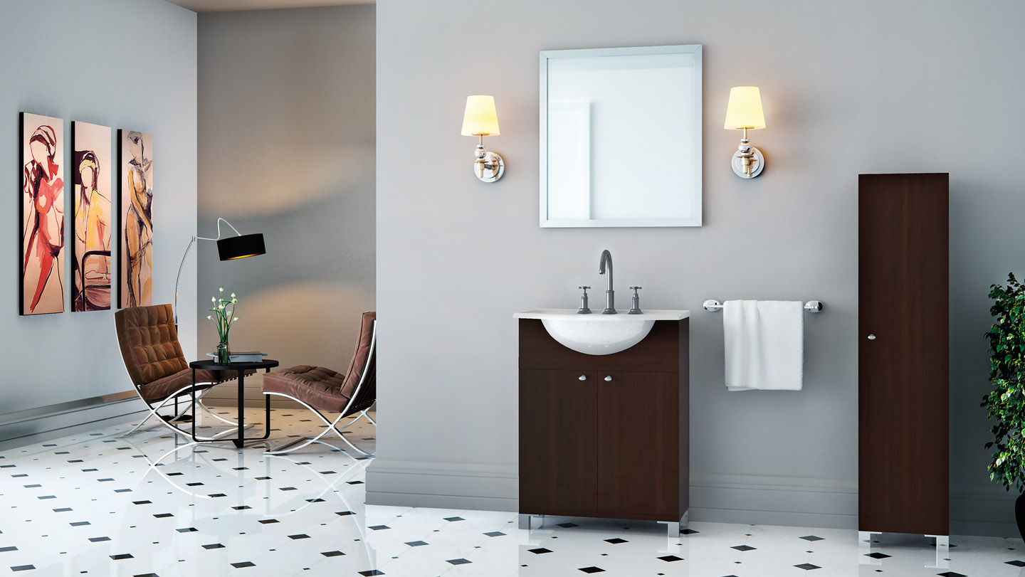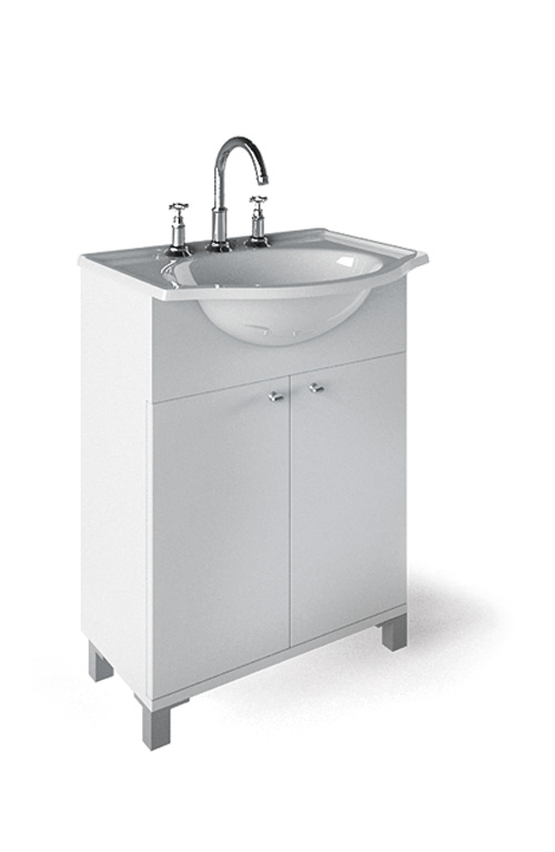 Presentado con una bacha en mármol sintético con pecho semi circular hacia el frente, lo hace lucir señorial aún en baños pequeños. Sin dudas una buena y económica elección.
