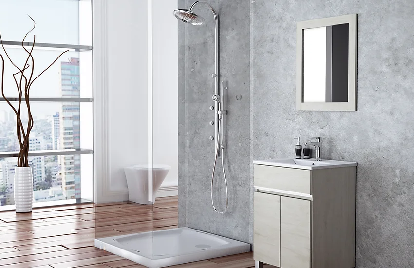 Vera es un mueble para baño de pie (dos puertas) que también cuenta con un armario de pie. Está disponible en melamina o también recubierto con una capa de PVC, lo que asegura funcionalidad y diseño.