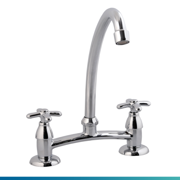 Juego de dos llaves para mesada de cocina con pico móvil alto