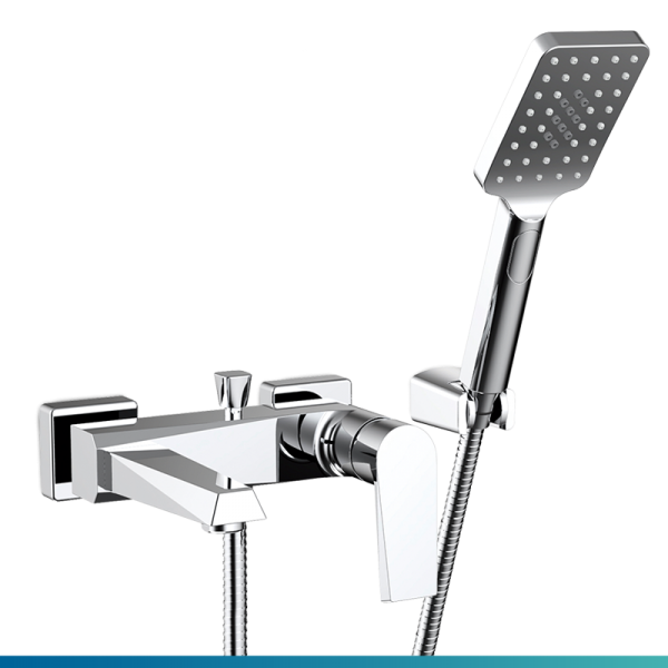 Juego monocomando exterior de pared, para bañera y ducha, con transferencia automática y ducha manual autolimpiante incluída.